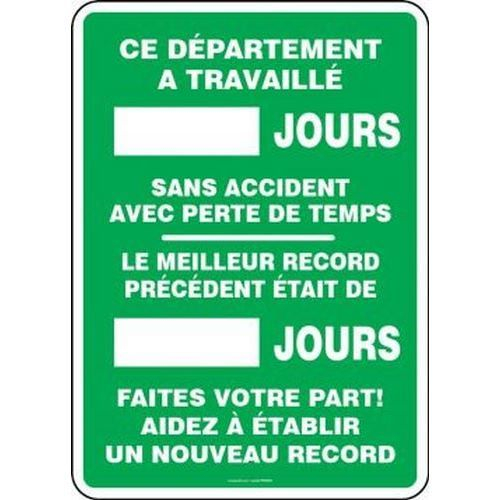Accuform, FRMSR124AL, Write-A-Day Scoreboards: This Department Has Worked _ Days Without A Lost Time Accident - The Best Previous Record Was _ Days - Do Your Part, 20" x 14", Aluminum, French