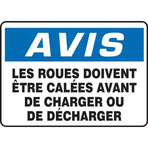 Accuform, FRMVHR830XT, 7" x 10" Dura-Plastic French Notice Sign: "Wheels Must Be Chocked Before..."