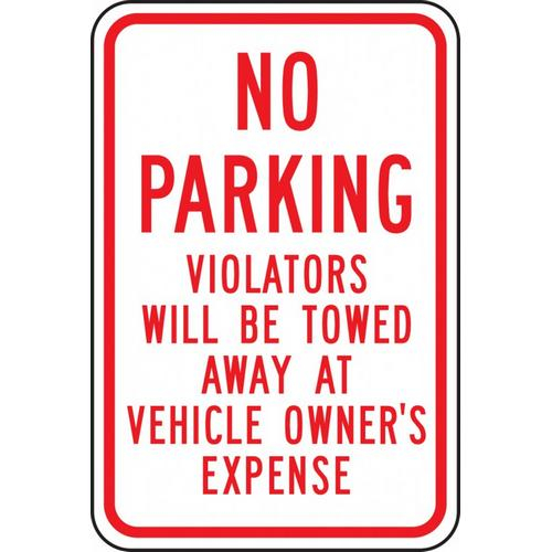 Sign with Legend: "No Parking Violators Will Be Towed Away at Vehicle Owner's Expense". Ensure drivers do not park where they are not supposed to with this sign.