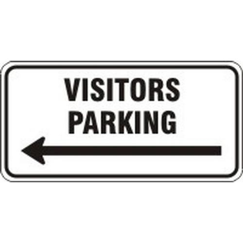 This sign is used to identify the direction in which the visitor parking lot is located.