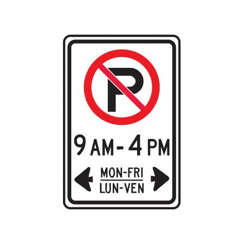 Accuform, FRP377DP, 18" x 12" No Parking Sign "9 Am - 4 Pm Mon-Fri Lun-Ven" DG High Prism