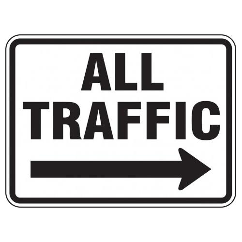 Accuform, FRR286DP, 18" x 24" Facility Traffic Sign "All Traffic" Right Arrow DG High Prism