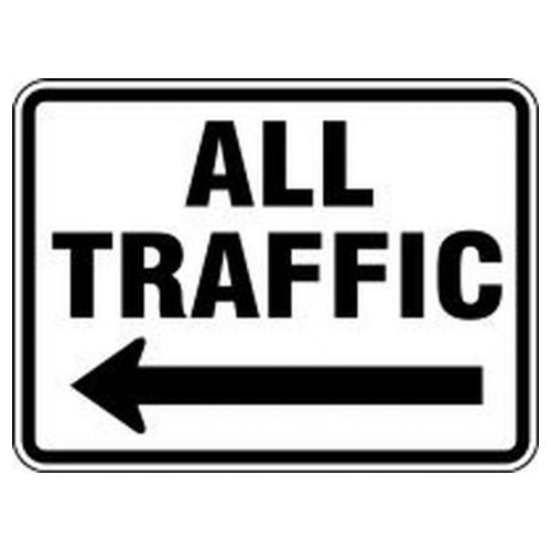 Accuform, FRR287RA, 18" x 24" Facility Traffic Sign "All Traffic" Left Arrow Engineer-Grade Prismatic