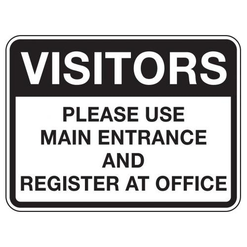 Legend "Visitors Please Use Main Entrance and Register at Office"