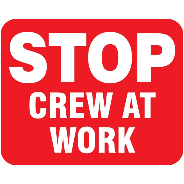 Accuform, FRR399RD, 12" x 15" Railroad Clamp Sign "Stop - Crew at Work" Red Non-Reflective Aluminum