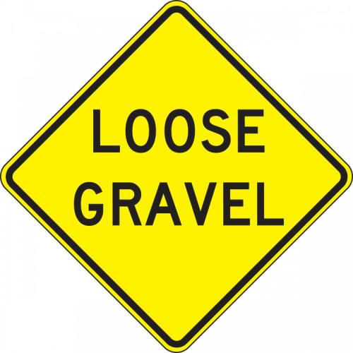 Inform road-users of a potential hazard by notifying them of an area with loose gravel.