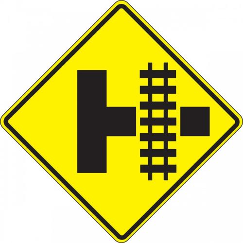 30" x 30" EG Reflective Aluminum Sign: "Railroad Crossing T-Intersection Highway"