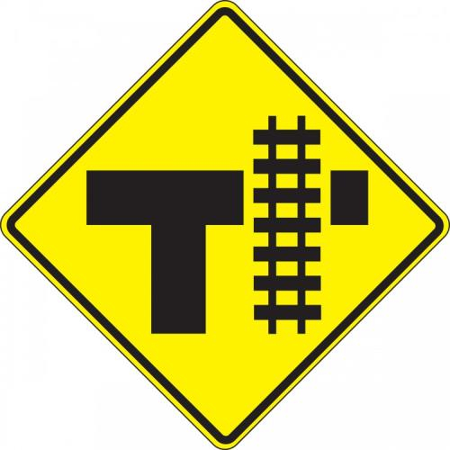30" x 30" High Intensity Prismatic Sign: "Parallel Railroad Crossing T-Road"