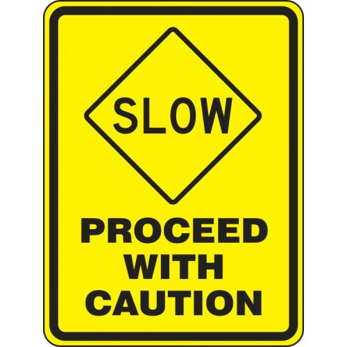 Accuform, FRW502HP, 18" x 12" HI Reflective Aluminum Sign: "Slow - Proceed with Caution"