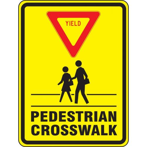 Instruct road-users to yield to pedestrian traffic in the crosswalk.