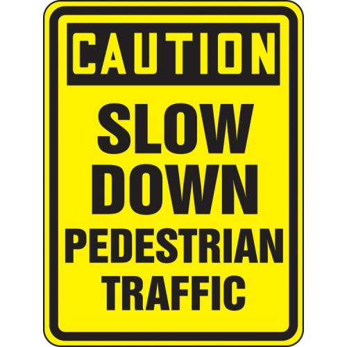 Accuform, FRW517HP, 24" x 18" High Intensity Prismatic Sign: "Caution Slow Down - Pedestrian Traffic"