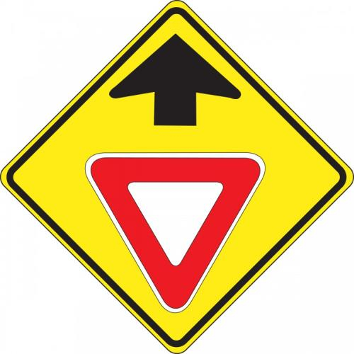 Inform road-users of a yield sign coming up ahead on the roadway.