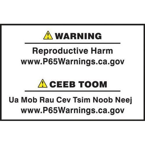 Accuform, HBLCAW621PSP, Multilingual Prop 65 Label: Reproductive Harm, Pressure Sensitive Paper, Hmong, 1" x 1-1/2"