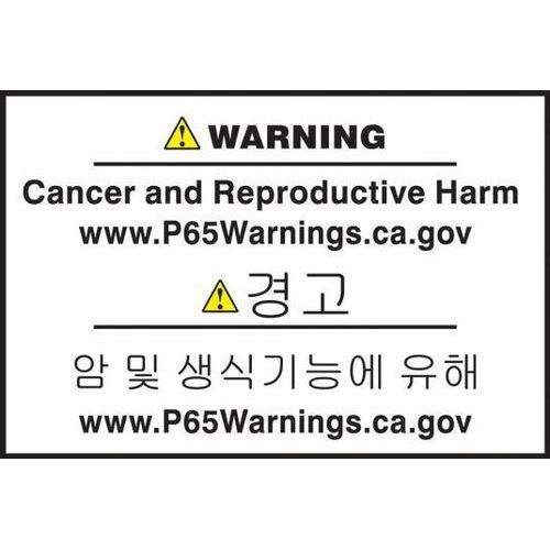 Accuform, KBLCAW622PSP, Multilingual Prop 65 Label: Cancer And Reproductive Harm, Pressure Sensitive Paper, Korean, 1" x 1-1/2"