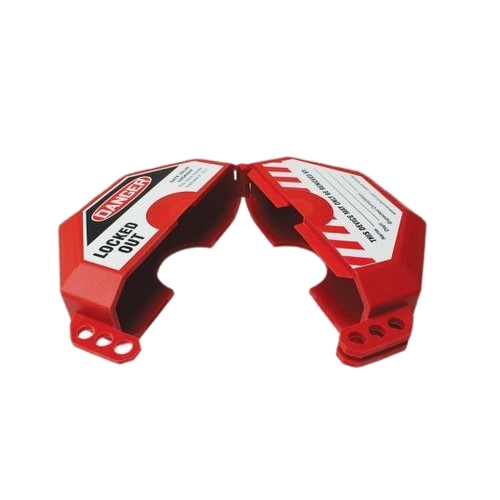 The gate valve lockout's hinged clamshell housing fully encloses the valve handle and prevents unauthorized access. The tough plastic is a bright hazard red color and features three shackle holes for securing with padlocks (sold separately) in a group lockout setting*. A unique pry guard, prevents the ability to insert a screwdriver in between the halves to pry them apart. In the center, a thinner area allows for easy drill through and attachment on rising stem gate valves. Comes with eye-catching safety label with red diagonal hazard stripes and space to write in pertinent lockout information.