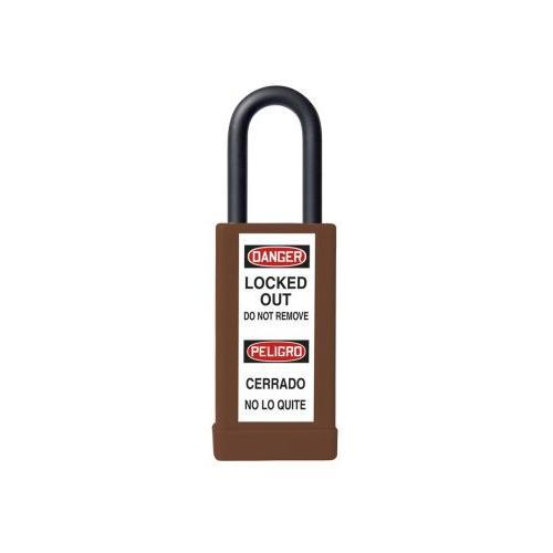 Plastic-covered safety padlocks are insulated to prevent electric shock. Lock components are non-magnetic and non-sparking making it ideal for use in lockout/tagout procedures. The corrosion resistant brass body stands up to the harshest environments including chemical washdowns and high-pressure cleaning found in food and beverage facilities. The solid brass body is encased by a colored plastic cover for quick recognition and distinction