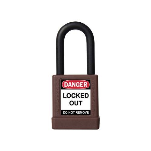 Plastic-covered safety padlocks are insulated to prevent electric shock. Lock components are non-magnetic and non-sparking making it ideal for use in lockout/tagout procedures. The corrosion resistant brass body stands up to the harshest environments including chemical washdowns and high-pressure cleaning found in food and beverage facilities. The solid brass body is encased by a colored plastic cover for quick recognition and distinction
