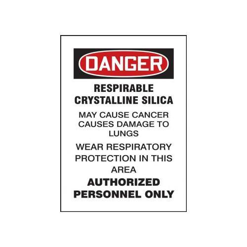 Accuform, LCAW112XVE, Safety Label OSHA Danger "Respirable Crystalline Silica - May Cause Cancer - Causes Damage to Lungs - Wear Respiratory Protection in This Area", 5" x 3-1/2"