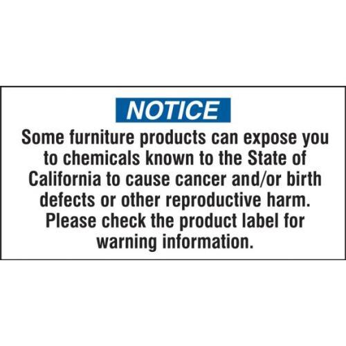 Prop 65 Furniture Product Exposure Safety Label: Cancer and Reproductive Harm
