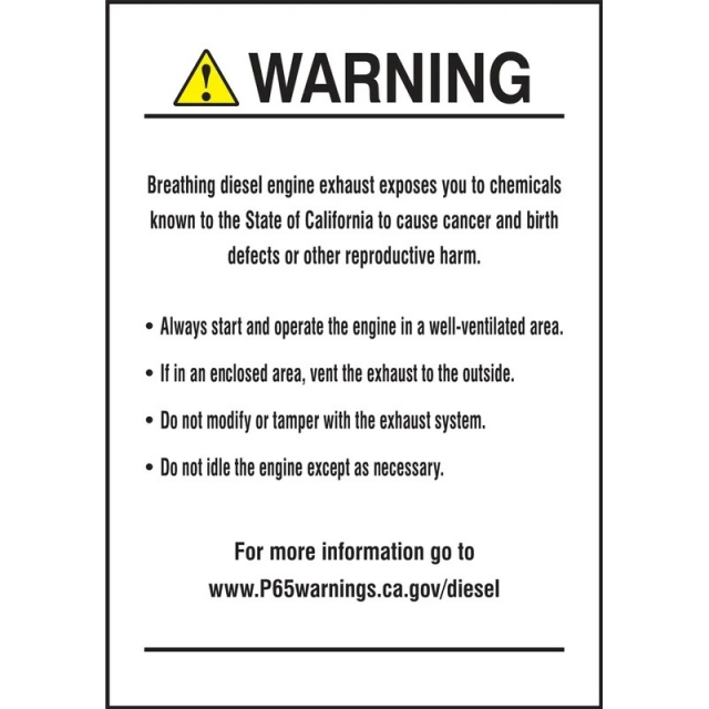 Accuform, LCAW626XVE, Prop 65 Diesel Engine Exposure Safety Label: Cancer And Reproductive Harm