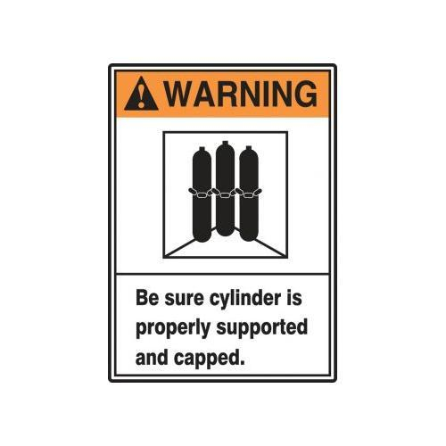 Accuform, LCPG300VSP, 5" x 7" ANSI Warning Safety Label "Be Sure Cylinder Is Properly Supported and Capped" Adhesive Vinyl