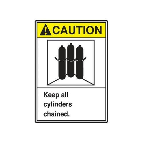 Accuform, LCPG600VSP, 5" x 3-1/2" ANSI Caution Safety Label "Keep All Cylinders Chained" Adhesive Vinyl