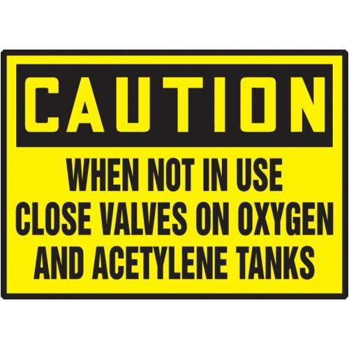 Accuform, LCPG601XVE, 3-1/2" x 5" Chemical & Hazardous Safety Label "When Not In Use Close Valves on Oxygen and Acetylene Tanks" Adhesive Dura Vinyl
