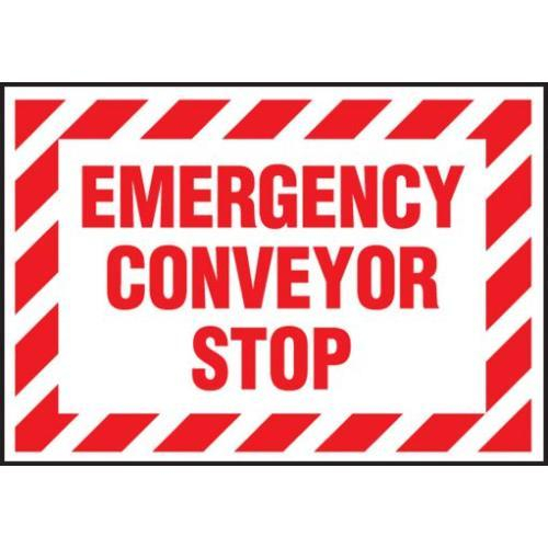 Accuform, LECN505XVE, 3-1/2" x 5" Safety Label "Emergency Conveyor Stop" Adhesive Dura Vinyl