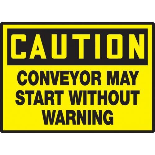 Accuform, LECN604XVE, 3-1/2" x 5" OSHA Caution Safety Label "Conveyor May Start without Warning" Adhesive Dura Vinyl