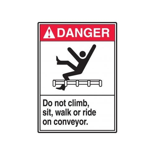 Accuform, LECR100VSP, 5" x 3-1/2" ANSI Danger Safety Label "Do Not Climb, Sit, Walk or Ride on Conveyor" Adhesive Vinyl