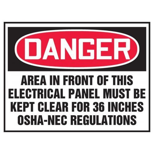 Accuform, LELC002XVE, 3-1/2" x 5" OSHA Danger Safety Label "Area In Front Of This Electrical Panel Must Be Kept Clear for 36 Inches - OSHA-NEC Regulations" Adhesive Dura Vinyl