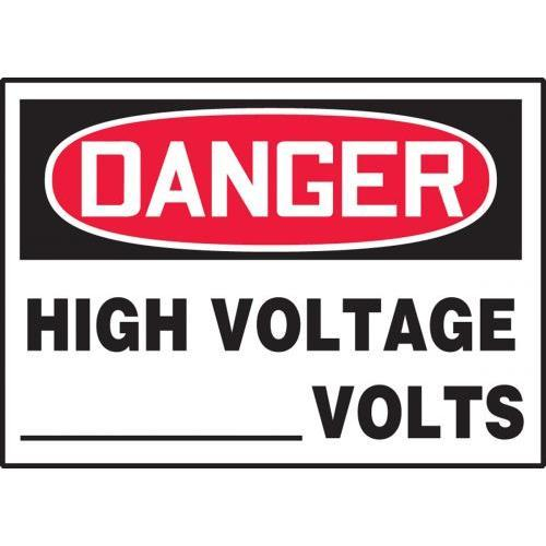 Accuform, LELC044VSP, 5" x 7" OSHA Danger Safety Label "High Voltage ___ Volts" Adhesive Vinyl