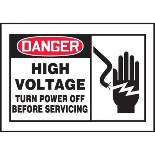 Accuform, LELC054VSP, 3-1/2" x 5" OSHA Danger Safety Label "High Voltage - Turn Power Off Before Servicing" Adhesive Vinyl
