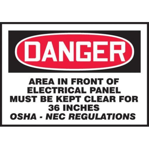 Accuform, LELC110VSP, 5" x 7" OSHA Danger Safety Label "Area In Front Of Electrical Panel Must Be Kept Clear for 36 Inches - OSHA-NEC Regulations" Adhesive Vinyl