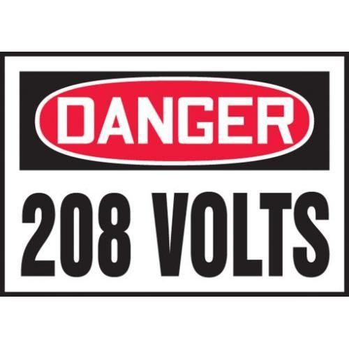 Accuform, LELC155XVE, 3-1/2" x 5" OSHA Danger Safety Label "208 Volts" Adhesive Dura Vinyl