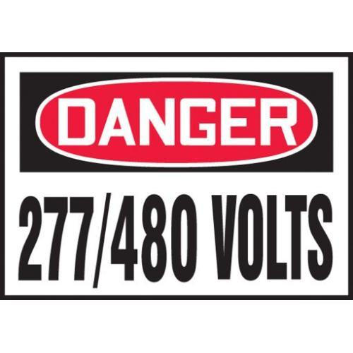 Accuform, LELC161XVE, 3-1/2" x 5" OSHA Danger Safety Label "277/480 Volts" Adhesive Dura Vinyl