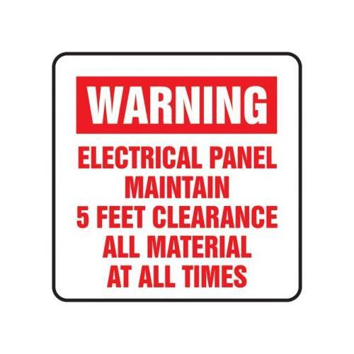 Accuform, LELC517, 8" x 8" Warning Safety Label "Electrical Panel Maintain 5 Feet Clearance All Material at All Times"
