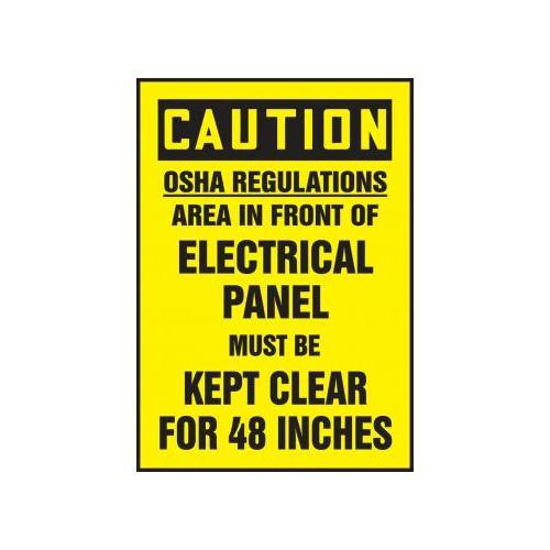 Accuform, LELC619VSP, 5" x 3-1/2" OSHA Caution Safety Label "OSHA Regulations - Area In Front Of Electrical Panel Must Be Kept Clear for 48 Inches" Adhesive Vinyl
