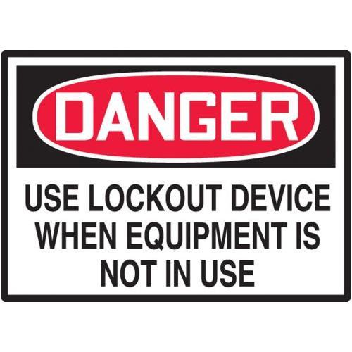 Accuform, LEQM047XVE, 3-1/2" x 5" Equipment Safety Label "Use Lockout Device When Equipment Is Not In Use" Adhesive Dura Vinyl
