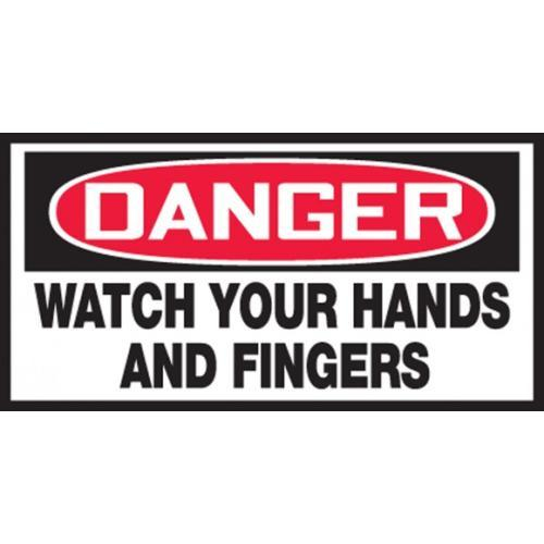 Accuform, LEQM101XVE, 1-1/2" x 3" OSHA Danger Safety Label "Watch Your Hands and Fingers" Adhesive Dura Vinyl