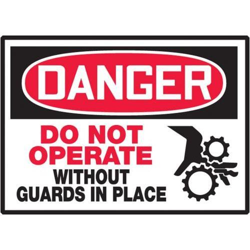 Accuform, LEQM137VSP, 3-1/2" x 5" OSHA Danger Safety Label "Do Not Operate without Guards In Place" Adhesive Vinyl