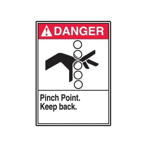 Accuform, LEQM142XVE, 5" x 3-1/2" ANSI Danger Safety Label "Pinch Point. Keep Back." Adhesive Dura Vinyl