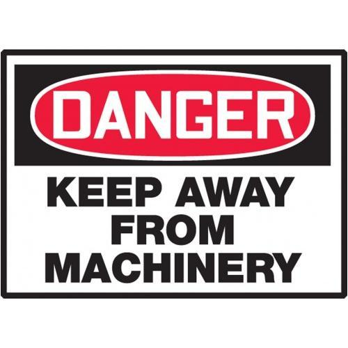 Accuform, LEQM158XVE, 3-1/2" x 5" OSHA Danger Safety Label "Keep Away From Machinery" Adhesive Dura Vinyl