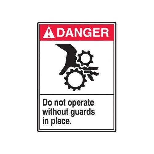 Accuform, LEQM160XVE, 5" x 3-1/2" ANSI Danger Equipment Safety Label "Do Not Operate without Guards In Place" Adhesive Dura Vinyl