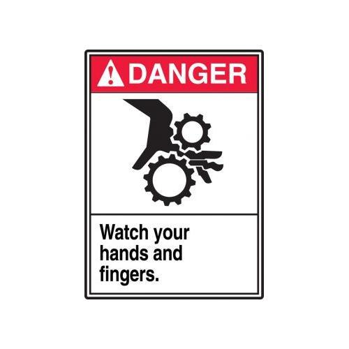 Accuform, LEQM165VSP, 5" x 3-1/2" ANSI Danger Safety Label "Watch Your Hands and Fingers" Adhesive Vinyl