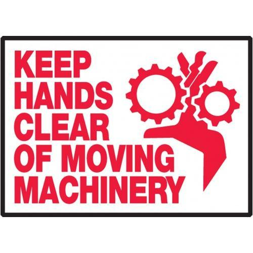 Accuform, LEQM519XVE, 3-1/2" x 5" Safety Label "Keep Hands Clear Of Moving Machinery" Adhesive Dura Vinyl