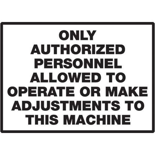 Accuform, LEQM522XVE, 3-1/2" x 5" Safety Label "Only Authorized Personnel Allowed to Operate or Make Adjustments to This Machine" Adhesive Dura Vinyl