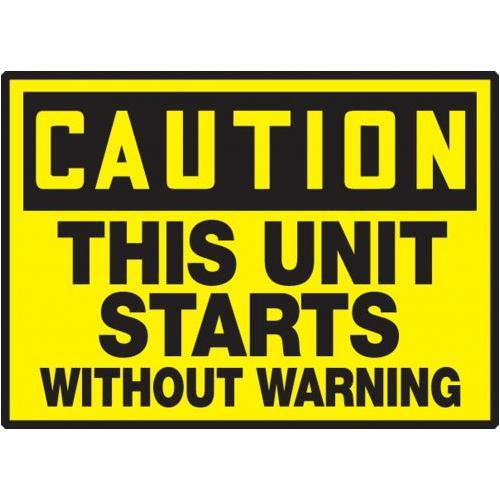 Accuform, LEQM611XVE, 3-1/2" x 5" OSHA Caution Equipment Safety Label "This Unit Starts without Warning" Adhesive Dura Vinyl