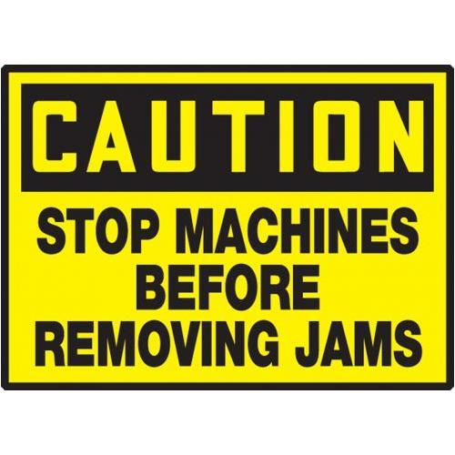 Accuform, LEQM614XVE, 3-1/2" x 5" OSHA Caution Safety Label "Stop Machines Before Removing Jams" Adhesive Dura Vinyl