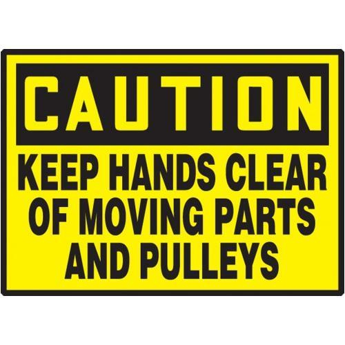 Accuform, LEQM623VSP, 3-1/2" x 5" OSHA Caution Safety Label "Keep Hands Clear Of Moving Parts and Pulleys" Adhesive Vinyl
